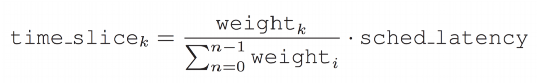 CFS摒弃了固定时间片分配,采用动态时间片分配,本次调度中进程可占用的时间与进程总数、总CPU时间、进程权重等均有关系,每个调度周期的值都可能会不一样。