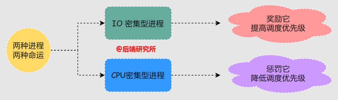 在调度器中往往需要对IO密集型进程进行奖励来提高其调度优先级,对CPU密集型进程进行惩罚降低其调度优先级。