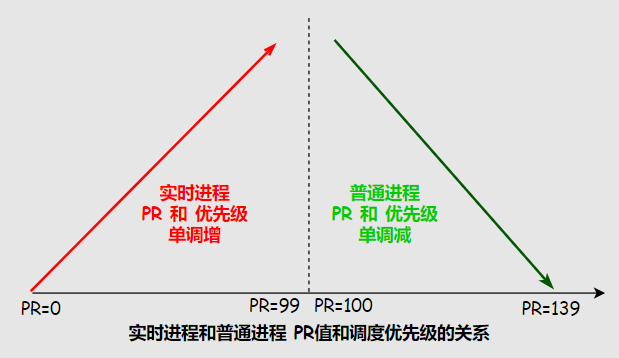 - 普通进程PR值范围是100~139,数值越小被调度优先级越高