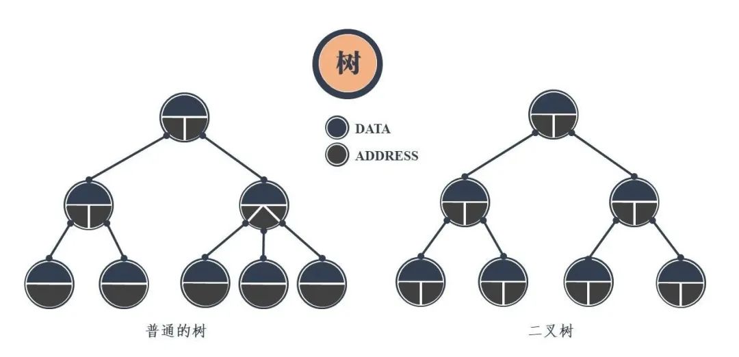 树可以衍生出许多的结构,若将指针域设置为双指针,那么即可形成最常见的二叉树,即每个结点最多有两个子树的树结构。二叉树根据结点的排列和数量还可进一度划分为完全二叉树、满二叉树、平衡二叉树、红黑树等。