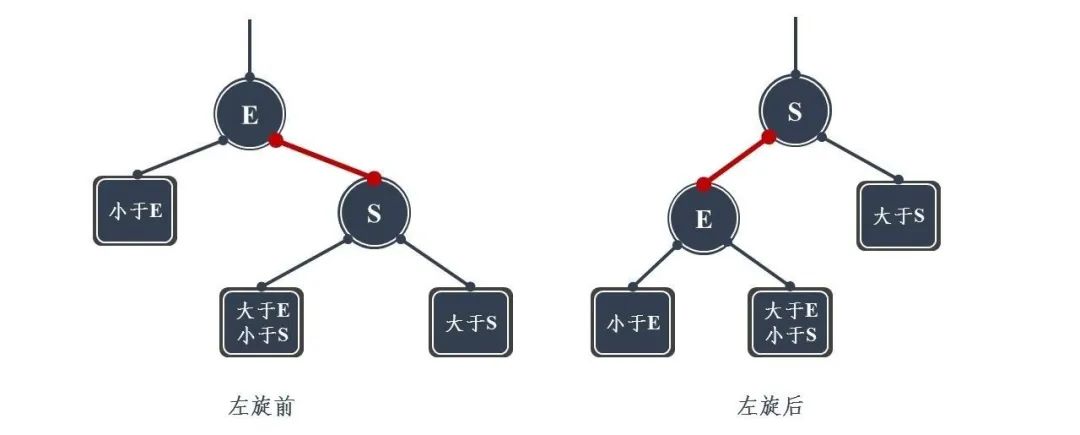 左旋:S为当前需要左旋的结点,E为当前结点的父节点。
