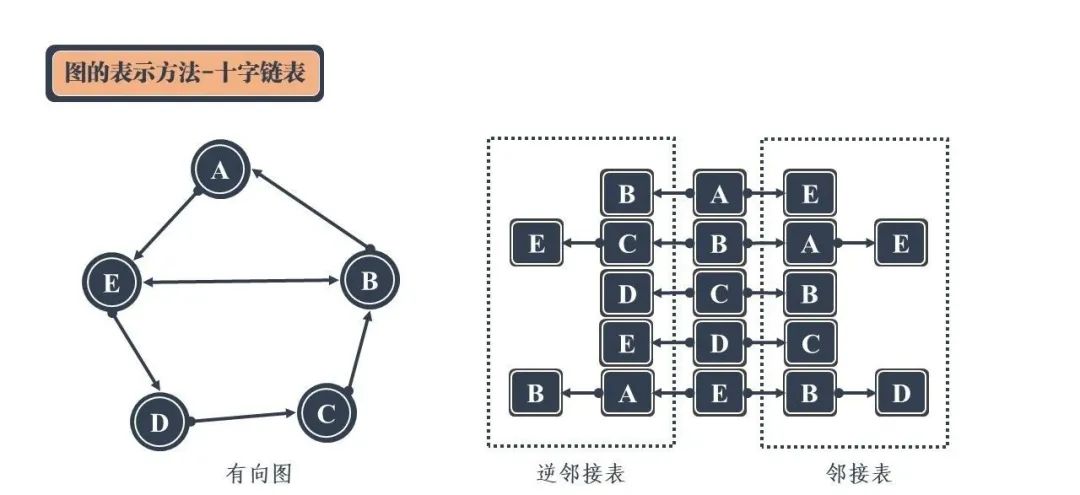 十字链表似乎很简单,只需要通过相同的顶点分别链向以该顶点为终点和起点的相邻顶点即可。