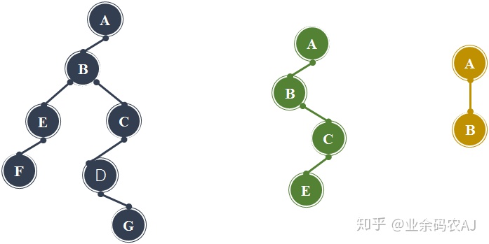 将上面三棵树分辨转换二叉树是以下形式。