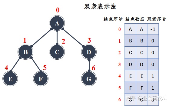 双亲表示法直接存储的是结点的双亲位置(对应于数组的下标),因此在求某个结点的双亲结点以及祖先结点时非常方便。但是却无法直接获得该结点的孩子结点的位置。