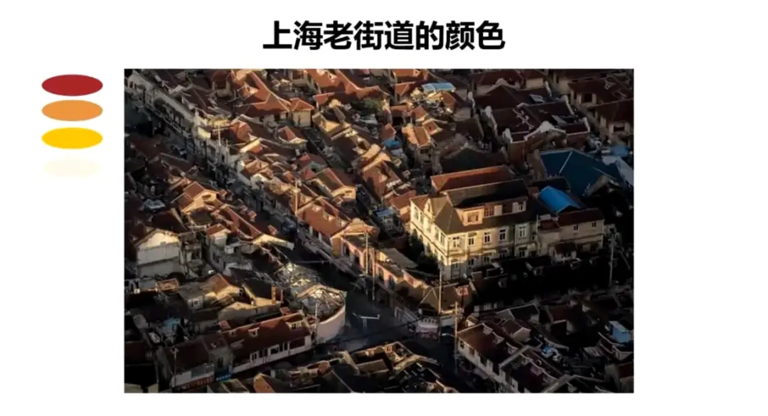 左边的图源自我们之前做过的一个研究。我们发现,在上海的一些老街道,房屋的建筑风格会偏向洋式,且大多会选用淡黄色的墙漆与深红色的顶漆。