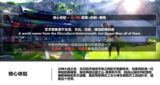 开放世界的核心体验目标,就是为玩家营造一个沉浸感、想象力、可信度都极高的世界,玩家能够自然而然地去感受这个世界,沉浸到故事和玩法当中。