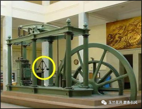 图9 苏格兰工程师詹姆斯·瓦特和马修·博尔顿共同建造的第一台带有离心式飞球调速器的蒸汽机[8](左);伦敦名为科学的雕塑,其手持之物即为离心式飞球调速器[10](右)