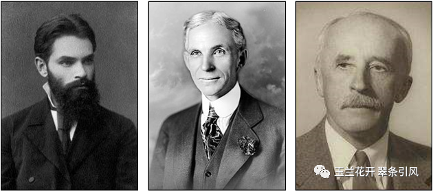 图14 亚历山大·李雅普诺夫(左)、亨利·福特(中)和尼古拉斯·米诺尔斯基(右)