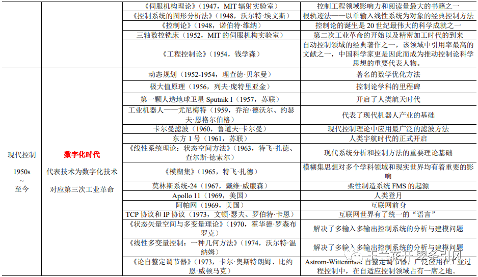 表 1 控制理论发展简史概略表