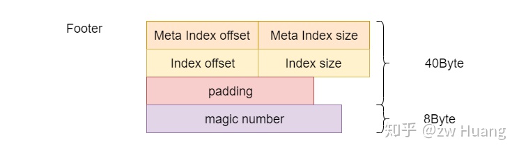 一个BlockHandler最长为20字节,魔数的大小是8字节,所以一个Footer最长为48字节,但是如果长度不固定的话,无法知道Footer开始的字节,所以通过padding将Footer固定为48字节的大小,而魔数则增加了校验功能。