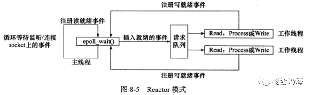 - 当socket上有数据可读时,epoll_wait通知主线程。主线程则将socket可读事件放入请求队列