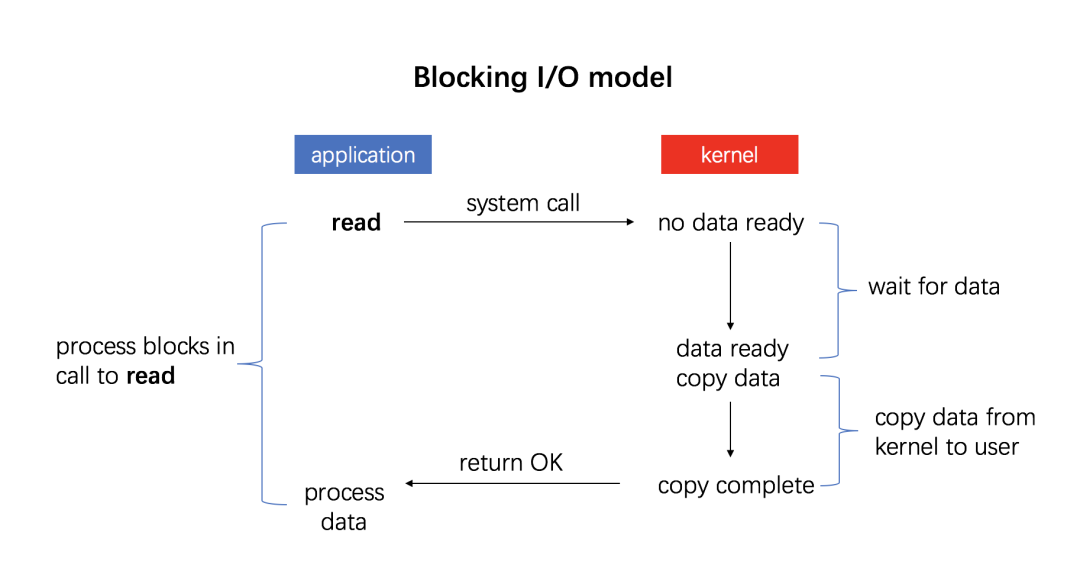 - 当调用 read 方法时,会阻塞着,此时内核会向磁盘发起 I/O 请求,磁盘收到请求后,便会寻址,当磁盘数据准备好后,就会向内核发起 I/O 中断,告知内核磁盘数据已经准备好;