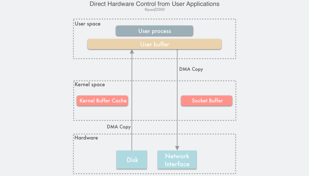 所以,这个过程之中,只进行了 2 次数据拷贝,如下图: