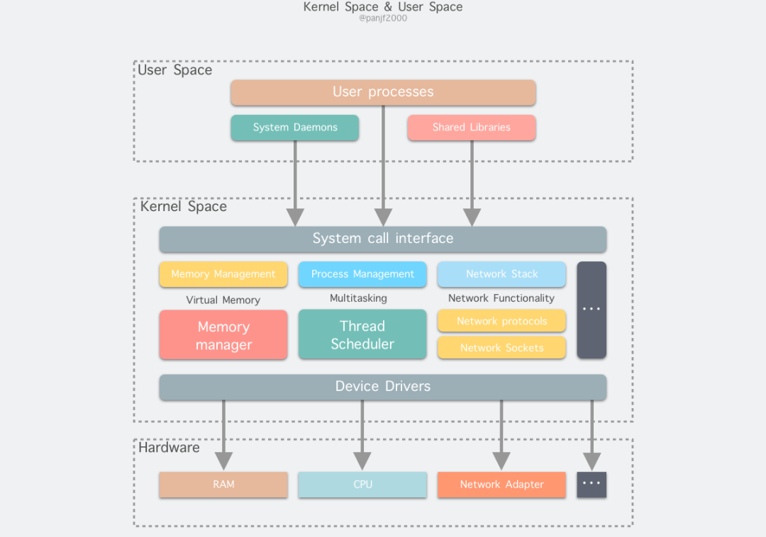 一般来说,我们在编写程序操作 Linux I/O 之时十有八九是在用户空间和内核空间之间传输数据,因此有必要先了解一下 Linux 的用户态和内核态的概念。