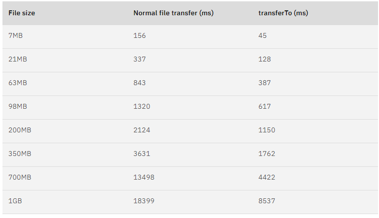 数据来源于:https://developer.ibm.com/articles/j-zerocopy/