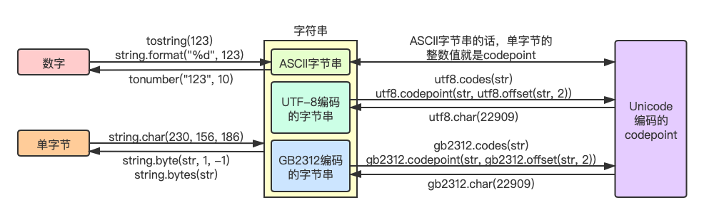 "\229\165\189"、"\u{597D}"、utf8.char(22909)三者得到的字节串是一样的,都是"好"的UTF-8编码字节串,其中22909是"好"这个字符的codepoint,597D是22909的16进制表示,229、165、189则是22909对应的UTF-8编码的三个字节- 针对字符串中反斜杠后面带的数字,Lua是以十进制来解释,C语言则将其解释为八进制