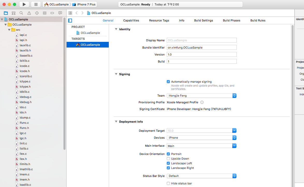 Lua环境的维护需要一个叫lua_State的结构体来支持,其贯穿了整个执行过程。因此,要使用Lua则需要先初始化一个lua_State结构体。修改View Controller的代码如下: