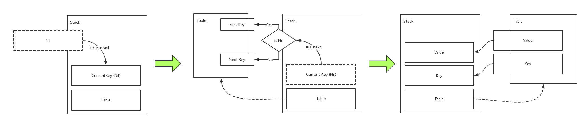 值得注意的是,在获取Key值时,最好先判断Key的类型,然后再根据其对应类型调用相应的lua_toXXX方法。否则,因为lua_toXXX系列方法会对元素值进行类型转换,如整型的Key被lua_tostring转换为String后再给到lua_next进行遍历就会报找不到指定Key的错误。