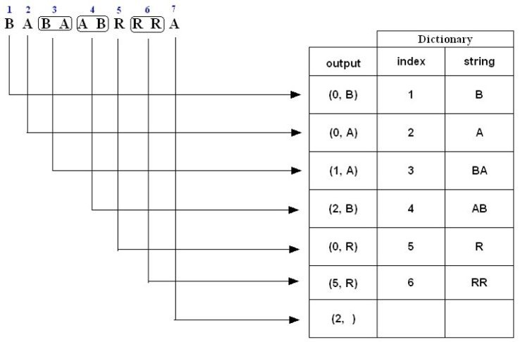 - LZ78:LZW、LZC、LZT、LZMW、LZJ、LZFG。