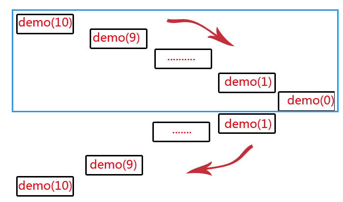 显而易见,这就是一个出栈入栈的过程。函数保存在栈帧中的操作和数据,我们可以通过自定义的栈来储存。
