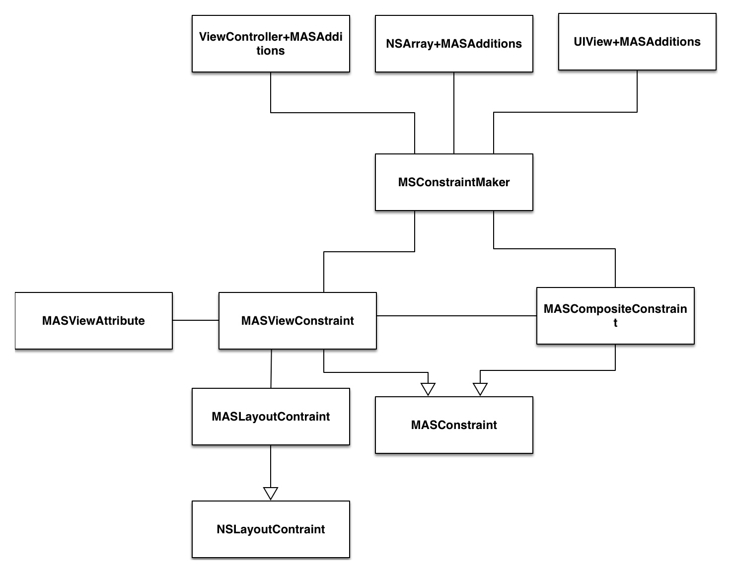 这几个类便是实现链式调用的关键,特别是 MASCompositeConstraints ,专门用来处理类似