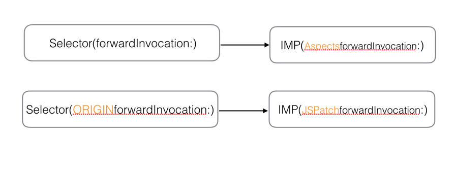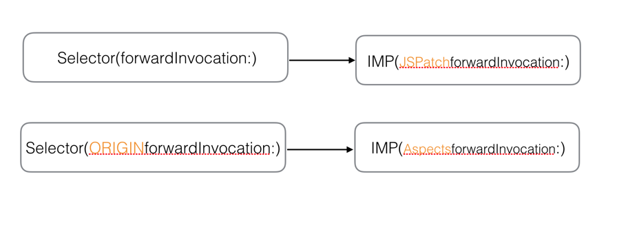 这里是两者兼容出现的最大问题,如果JSPatch在转发前判断一下这个方法是自己添加的-ORIGxxx,把前缀ORIG去掉再转发,这个问题就解决了。