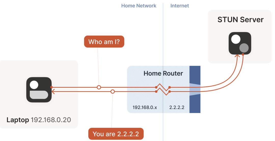ip:port; - 查询 STUN 服务器来获取自己的公网