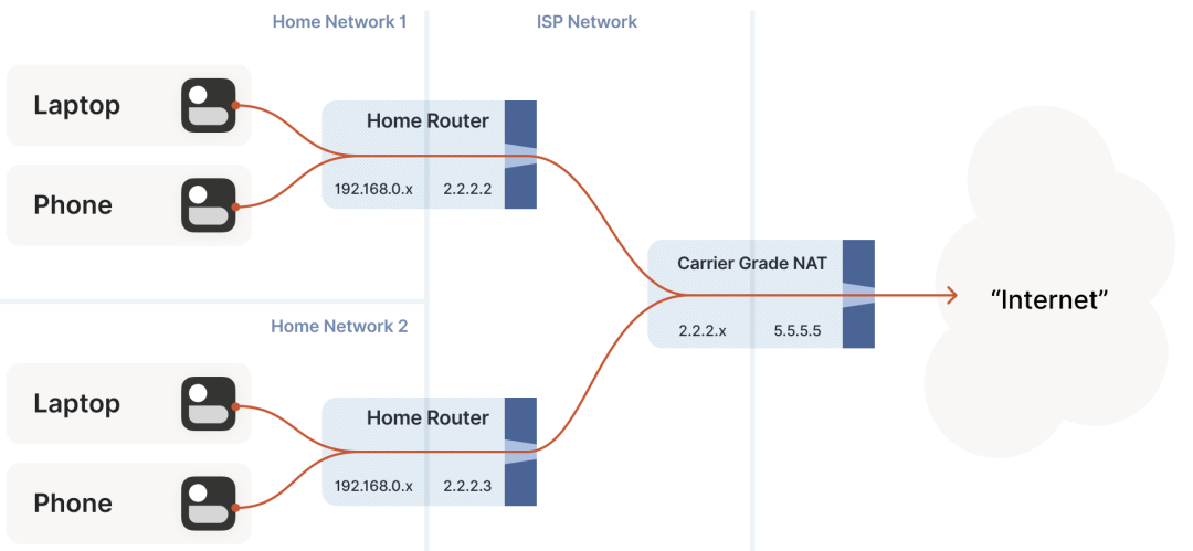 但对于 NAT 和防火墙穿透来说,我们会关心每个具体的 IP 地址和端口。