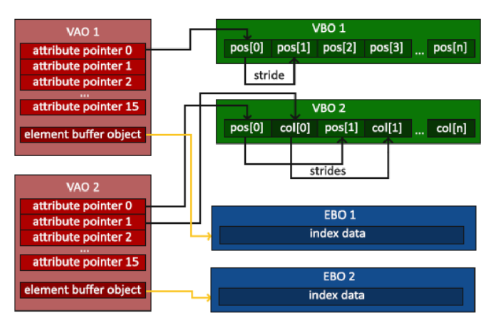 而当数据储存到GPU的内存(显存)中后,顶点着色器几乎能立即访问顶点,这是个非常快的过程