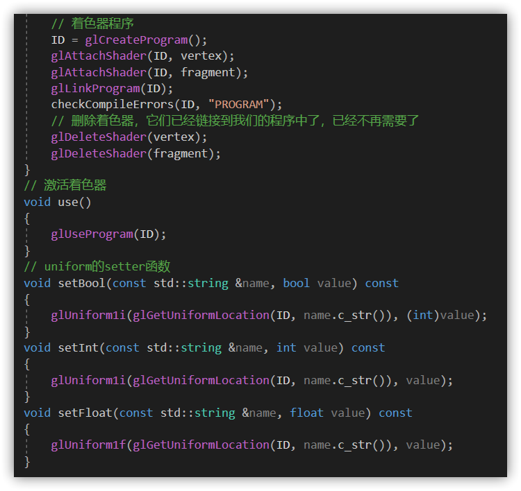但是我们在Shader类里已经写好了这些东西,和几个Set的函数