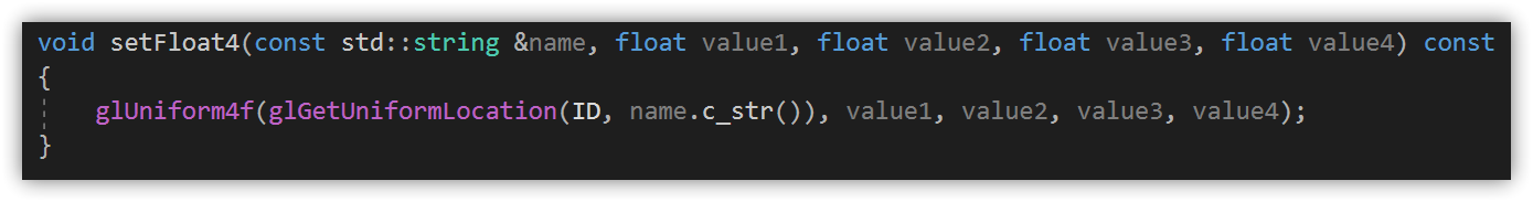 glUniform4f(glGetUniformLocation(ID, name.c_str()), x, y, z, w);
