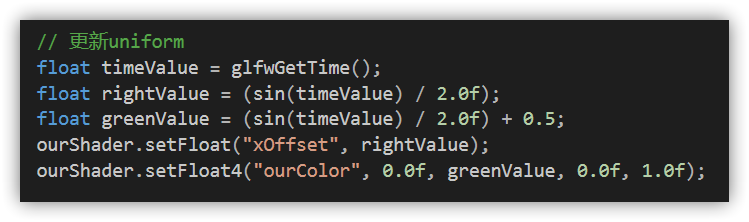 ourShader.setFloat("someUniform", 1.0f);