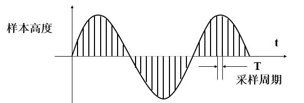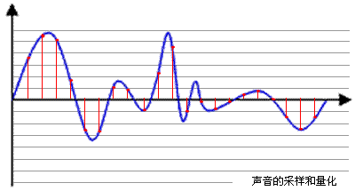 计算机不能直接处理连续的模拟信号,所以需要进行A/D转换,以一定的频率对模拟信号进行采样(就是获取一定时间间隔的波形振幅值,采样后模拟出的波形与原始波形之间的误差称为采样噪音),然后再进行量化和存储,就得到了数字音频。