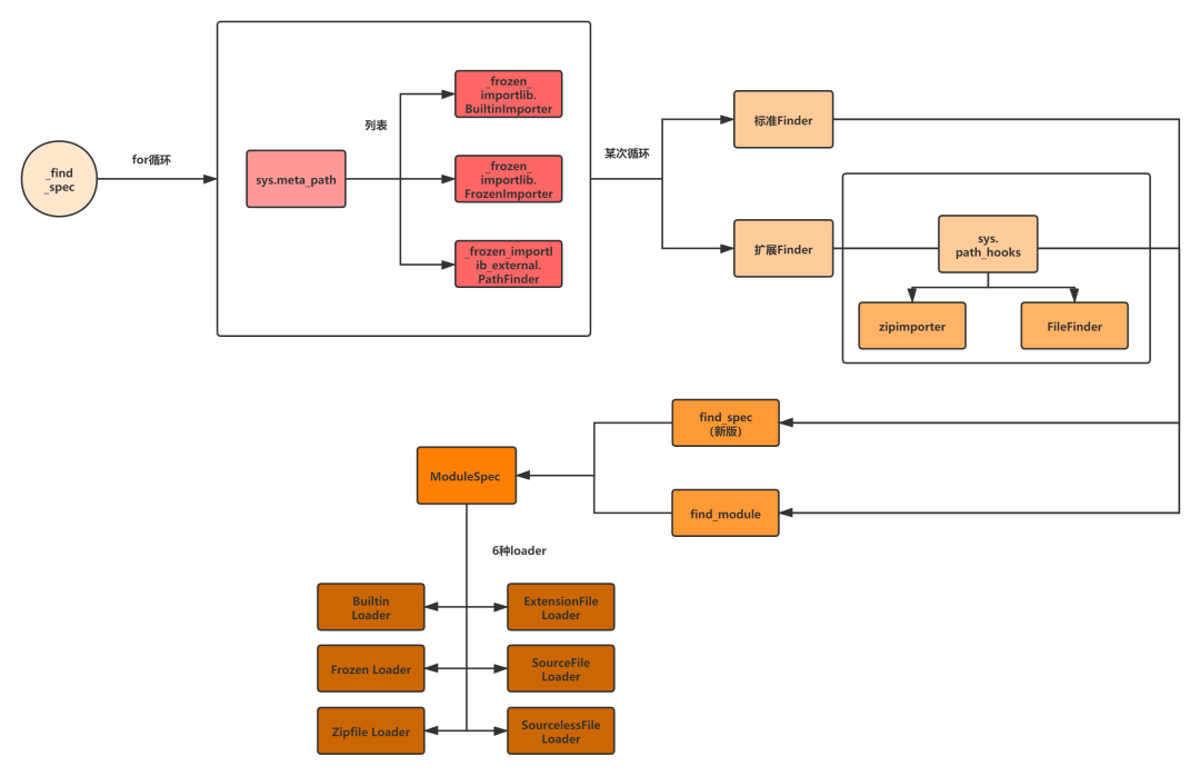 可以看出,在模块加载的时候相对于查找逻辑更加清晰,和Finder同样的道理,load_module和exec_module的区别也是在Python3.4之后官方建议的加载方式,关于具体的exec_module的实现我们大概说下