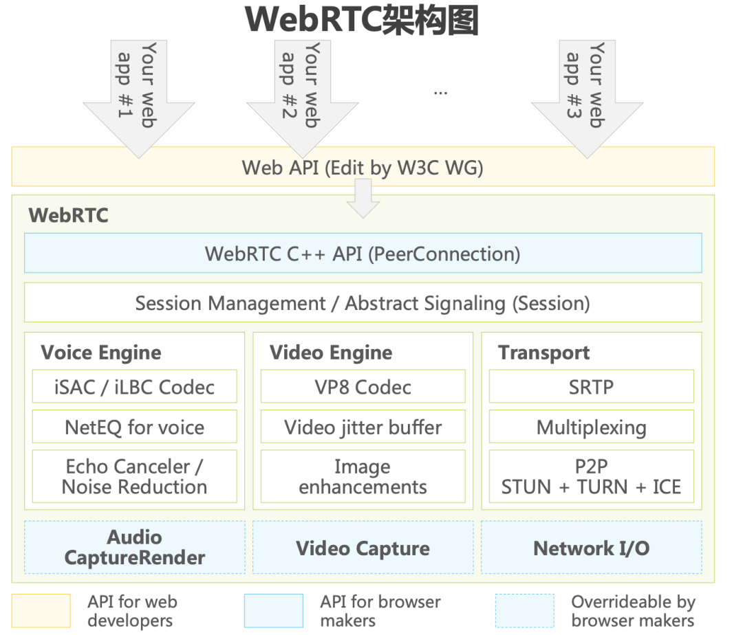 WebRTC是目前实时音视频领域最流行的开源框架。2010年Google收购GIPS引擎后,将其纳入Chrome体系且开源后,命名为“WebRTC”。WebRTC获得各大浏览器厂商的支持并纳入W3C标准,促进了实时音视频在移动互联网应用中的普及。2021年1月,W3C和IETF两大标准制定组织宣布WebRTC成为官方标准,用户无需下载额外组件或单独的应用程序,便可以支持在网络上的实时音视频通信。尽管WebRTC具有免费开源的特性,但其庞大、繁杂,学习门槛高,又缺乏服务器方案的设计和部署,为基于WebRTC搭建的商用方案留下了发展空间。第三方的RTC PaaS厂商凭借规模效应和技术优势成为开发者的首选,推动实时音视频行业进入发展的快车道。