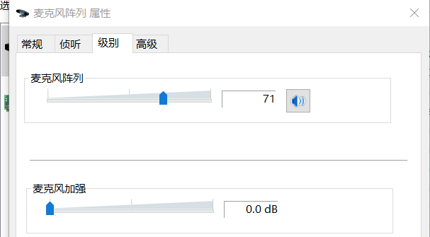 - 音量方面,PC 端设备都支持模拟增益调节,大多数带有阵列的 Windows 设备都有额外的麦克风加强(如下图)。软件算法层面(3A 中的 AGC)需要具备自适应调节他们的能力,保障音频采集音量的平稳以控制采集底噪水平。初值设置或自适应调节不当都会导致音量小和爆音等问题,严重的会影响回声消除和降噪的效果,带来影响可用性的风险。