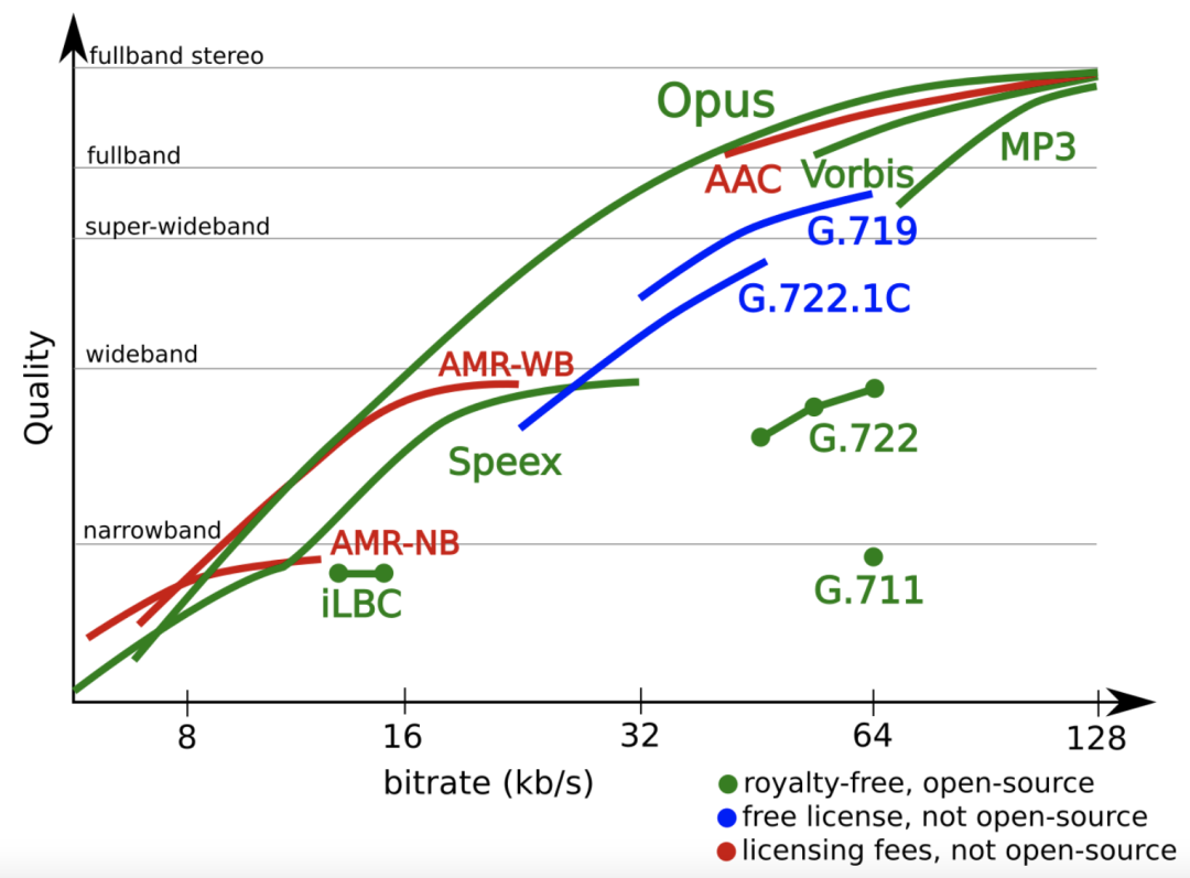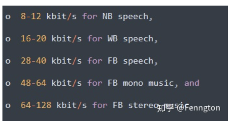 - 总结:在音乐场景等对音质要求高的场景下,可以采用更高复杂度的Celt编码配合更高的码率,实现音乐高音质体验;在语音场景下,可以采用Silk编码即可;另外,编码器的码率也很重要,码率过低后,Opus会自动从FB编码降级到WB甚至NB编码,从而导致编码器侧的“频谱截断”效应, AAC也有类似现象,这部分可以结合本文3.6里的案例分析来看。