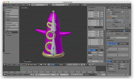 接下来,我想探索骨骼动画,所以我打开了Blender,做了一个触手模型,并且用一个前后摆动的双骨架来操纵它。