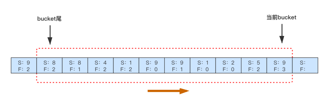 实现的方案很简单,基于断路器的思想,限制 请求失败/请求成功 的比率,给重试增加熔断功能。我们采用了常见的滑动窗口的方法来实现,如下图,内存中为每一类RPC 调用维护一个滑动窗口,比如窗口分 10 个 bucket ,每个 bucket 里面记录了 1s 内 RPC的请求结果数据(成功、失败)。新的一秒到来时,生成新的 bucket ,并淘汰最早的一个 bucket ,只维持 10s 的数据。在新请求这个 RPC失败时,根据前 10s 内的 失败/成功 是否超过阈值来判断是否可以重试。默认阈值是 0.1 ,即下游最多承受 1.1 倍的 QPS,用户可以根据需要自行调整熔断开关和阈值。