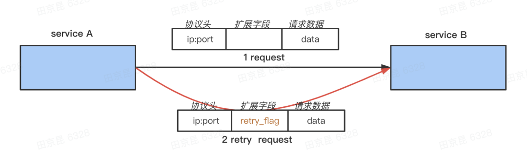 因此为了处理这种情况,除了下游传递重试错误标志以外,我们还实现了“对重试请求不重试”的方案。
