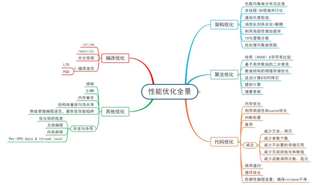 性能优化可分为宏观和微观两个层面。宏观层面包括架构重构,而微观层面,则包括算法的优化,编译优化,工具分析,高性能编码等,这些方法是有可能独立于具体业务逻辑,因而有更加广泛的适应性,且更易于实施。