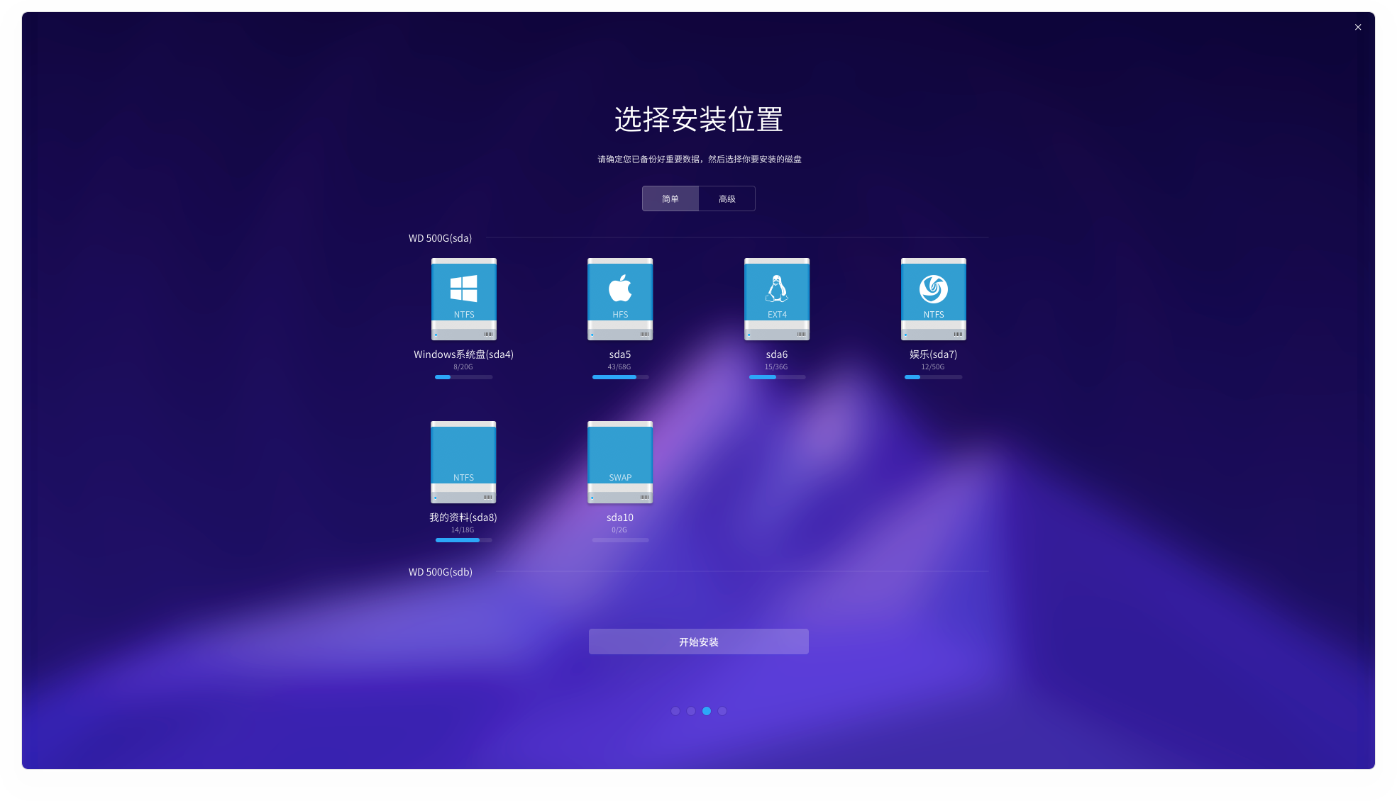 - 安装linux不需要知道分区知识,不需要知道 /、/var、/boot、/home、swap啥概念,选择任意空白分区即可安装,还可以根据内存大小自动选择是否设置swapfile(大内存不设置加速读取,小内存自动算swapfile最佳大小,当然也可以手动设置swap分区)
