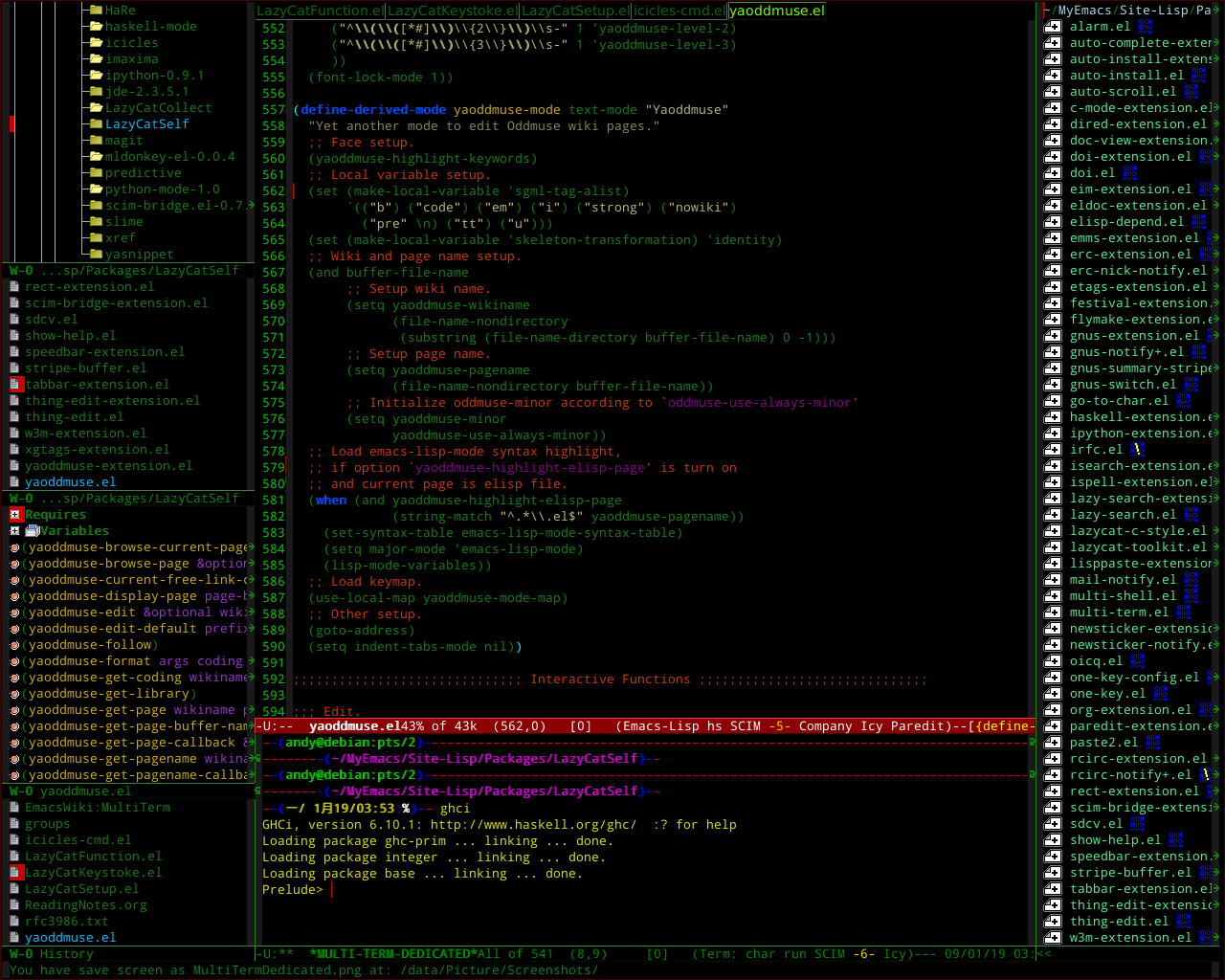 - 我十几年的Emacs插件和贴心配置,那时候还没有 spacemacs 存在呢: 那些鄙视deepin只会开发图形应用的喷子, 命令行操作先超过我再来喷吧, https://www.emacswiki.org/emacs/AndyStewart , 我Emacs做任何事情全程不用一下鼠标