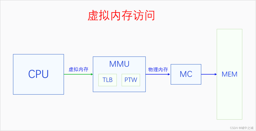 物理内存的这些操作都是在内核里进行的,但是CPU访问内存用的并不是物理内存地址,而是虚拟内存地址。内核需要建立页表把虚拟内存映射到物理内存上,然后CPU就可以通过MMU用虚拟地址来访问物理内存了。虚拟内存地址空间分为两部分,内核空间和用户空间。内核空间只有一个,其页表映射是在内核启动的早期就建立的。用户空间有N个,用户空间是随着进程的创建而建立的,但是其页表映射并不是马上建立,而是在程序的运行过程中通过缺页异常逐步建立的。内核页表建立好了之后就不会再取消了,所以内核是不换页的,用户页表建立之后可能会因为内存回收而取消,所以用户空间是换页的。内核页表是在内核启动时建立的,所以内核空间的映射是线性映射,用户空间的页表是在运行时动态创建的,不可能做到线性映射,所以是随机映射。