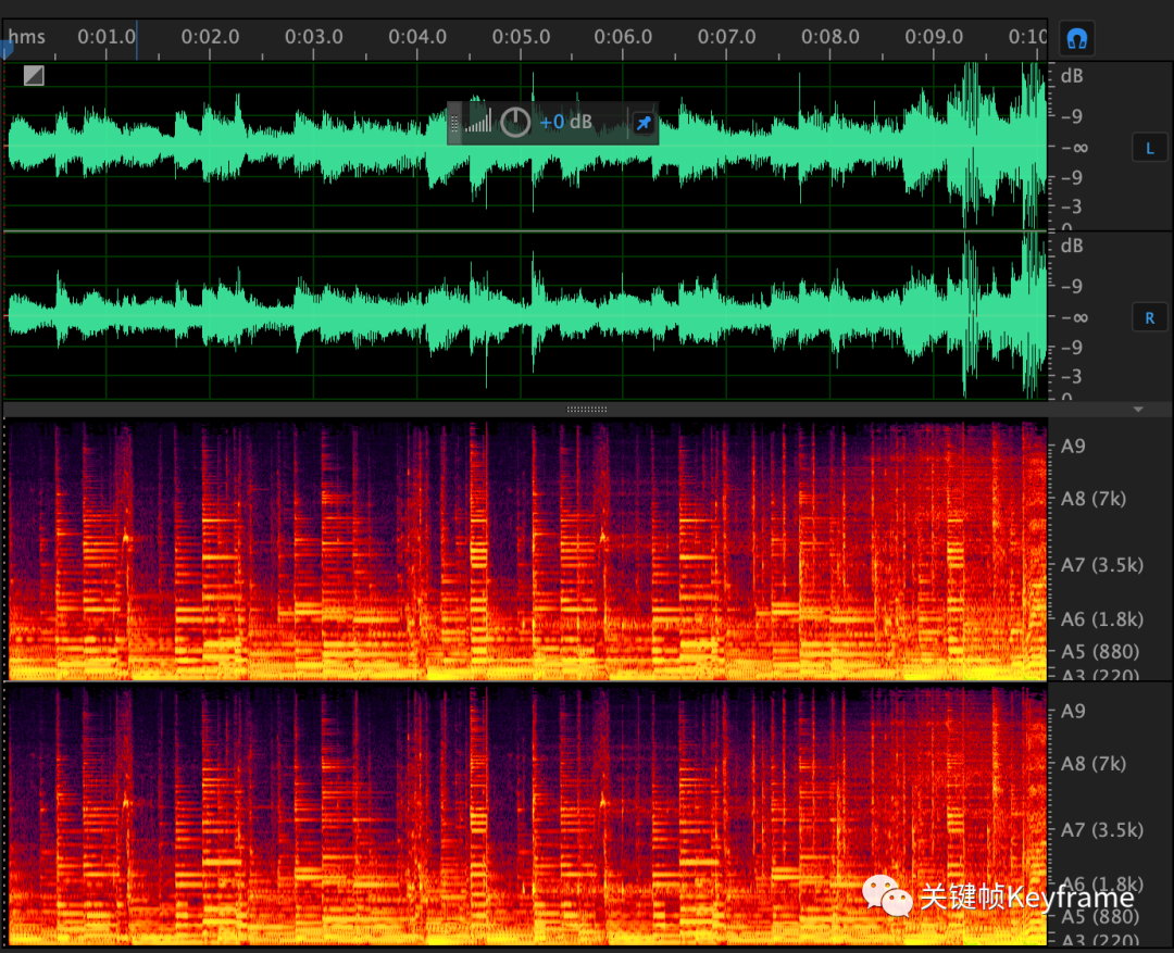 波形图可以帮助我们检查音乐整体音量的大小,在混音中常常可以看出动态和响度等问题,可以用来辅助调节压缩器和限制器。频谱图则可以帮助我们定位音乐细节在各频段上的分布问题,在混音中可以用来辅助调节滤波器和均衡器。