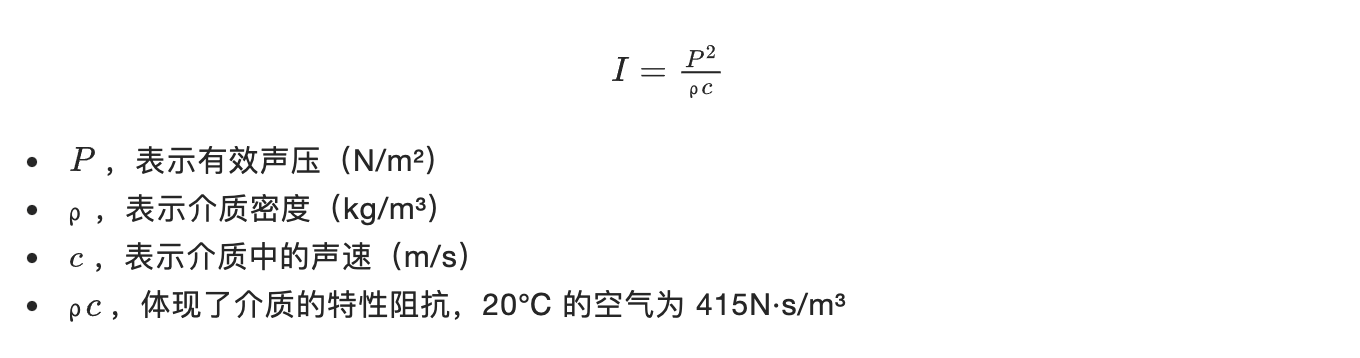 声压与声强的关系:在自由声场中,某处的声强与该处声压的平方成正比,与介质密度与声速的乘积成反比。