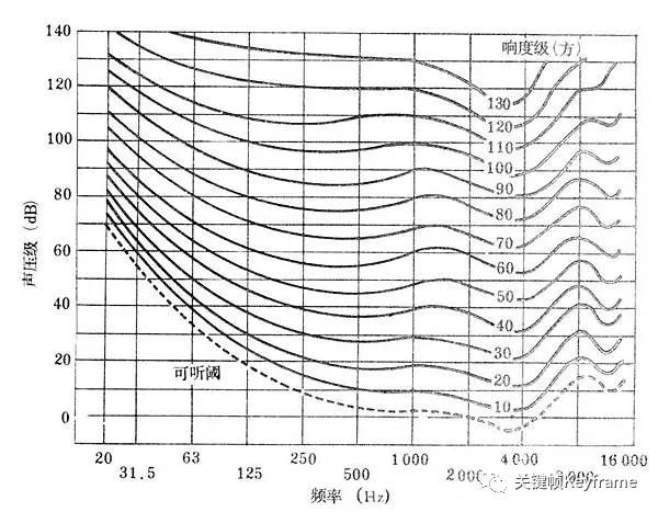 比如上表所说的,飞机起飞时的声音是 120 分贝,如果我们知道对应的声音的频率,我们就能知道它的响度级。