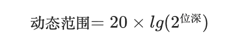 量化位深是对模拟音频信号的幅度轴进行数字化,它决定了模拟信号数字化以后的动态范围。比如,8 bit 位深可以拥有 48 分贝的动态范围,16 bit位深可以拥有 96 分贝的动态范围,24 bit 位深可以拥有 144 分贝的动态范围,32 bit 位深可以拥有 192 分贝的动态范围。这里位深和动态范围的数值对应关系的计算公式可以从上文声压级的计算公式推导而来。位深体现的是能表示的值的范围,比如 16 bit 能表示的最大值是 2^16- 1 = 65535,那么取其最大值就能计算它能表示的最大声压级:最大声压级 = 20 × lg(65535) = 96.33。所以 16 bit 的位深可以最大表示 96 分贝。