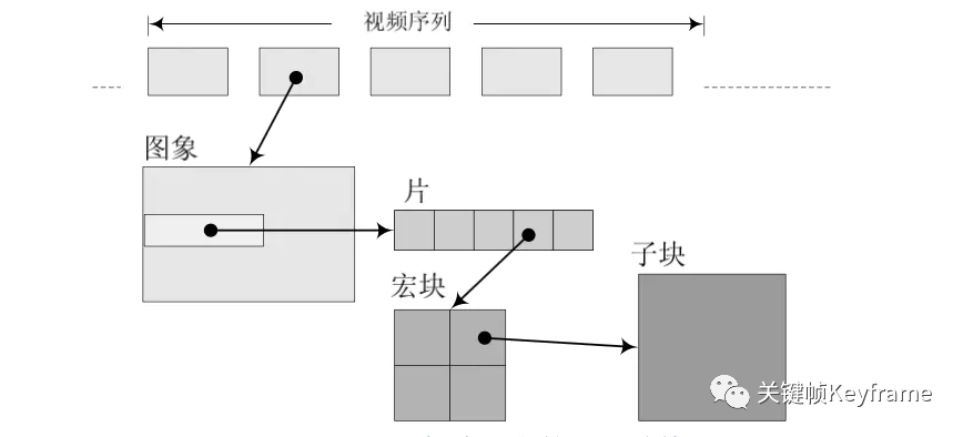 H.264 中,句法元素可以分为『序列』、『图像』、『片』、『宏块』、『子宏块』五个层次。