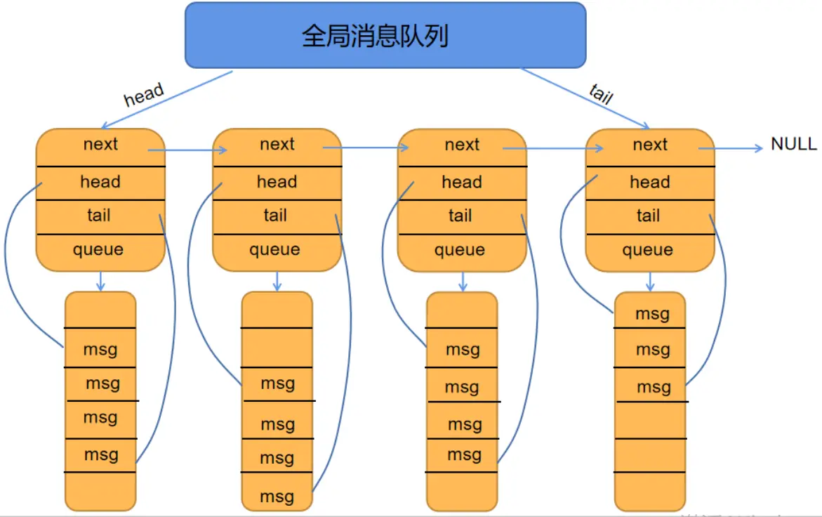 struct message_queue *next; //指向下个次级消息队列的指针